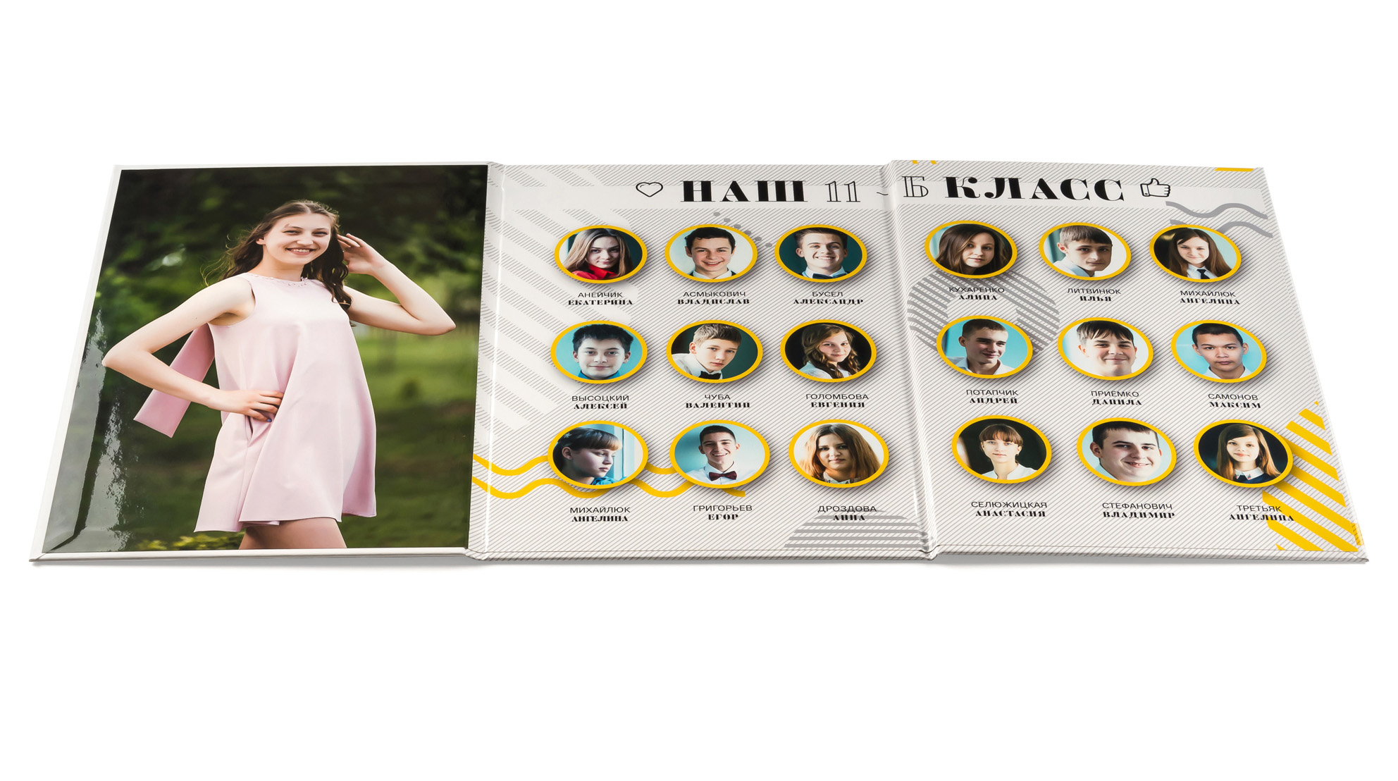 Принтбук — це фотокнига з м’якими сторінками надрукована поліграфічним способом. Листи друкуються на глянцевому папері та зшиваються в журнальний блок. Кількість сторінок залежить від кількості учнів.